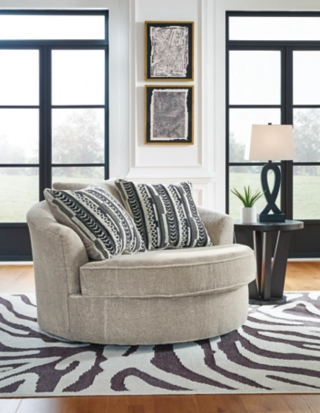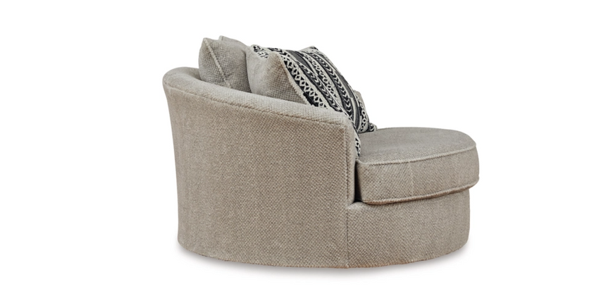 This oversized swivel accent chair caters to your need for contemporary comfort. Large in scale and decked out in feel-good fabric, it gives you space to sprawl out. And the 360-degree swivel motion makes it easy to view the TV or chat with others in your seating area. Quality time has never been so cozy.