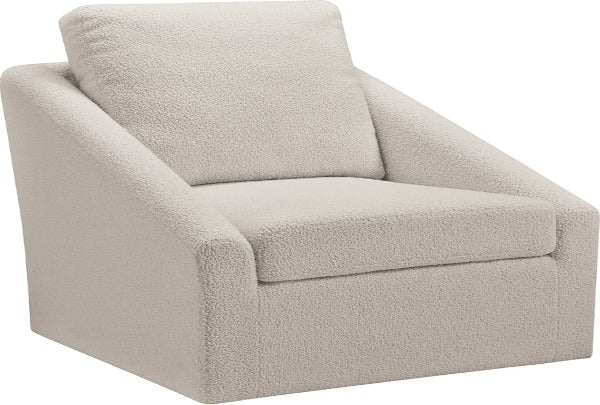 Casual gets an upgrade with sloped arms and the soft, cozy Sherpa upholstery of this swivel accent chair. Place this chair in your favorite space to create a relaxed and stylish spot to unwind. Made of polyester with sherpa texture Cream upholstery Attached back and seat cushions Metal swivel base...