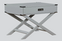 The Hudson chairside table comes in a grey finish and features hardware accents on the corners and an X-style base with stretches. The drawer provides extra storage space for your books or small electronics.