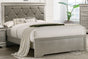 The Amalia Queen bed will energize your bedrooms. Boasting transitional style, this twin panel bed is a chic addition to your master suite or guest bedroom. This bed with a Champagne finish frame is beautifully designed with an upholstered headboard accented with button-tufted details.