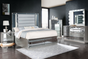 Your bedroom should be a representation of yourself, and if you're all about the glitz and glam of life, this Aurora collection is perfect for you. With details such as a stunning silver finish, Led lights in the headboard, mirrored accent panels, led light under the nightstand, and two storage drawers in the footboard that's truly fit for royals - these pieces offer an impressive, glamorous flair. The Aurora collection is a great option if you are looking for Glam furniture.