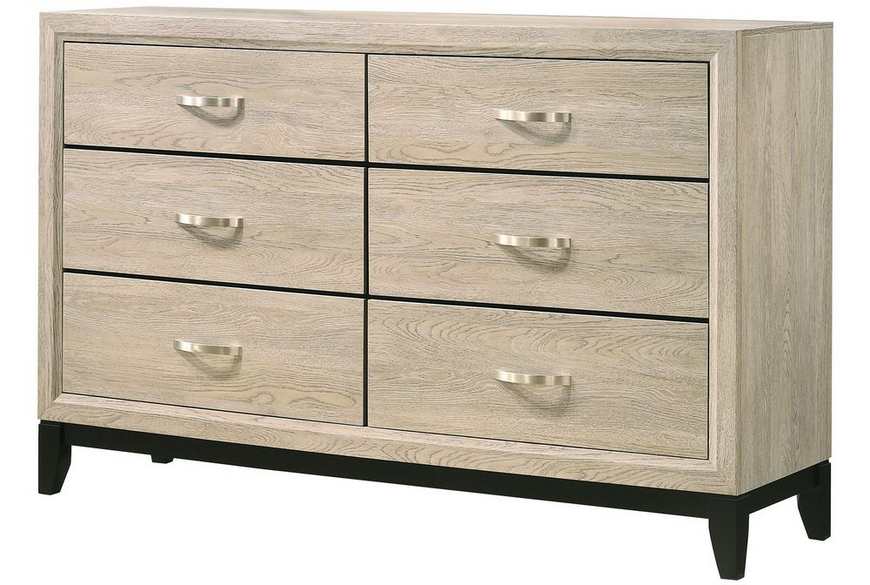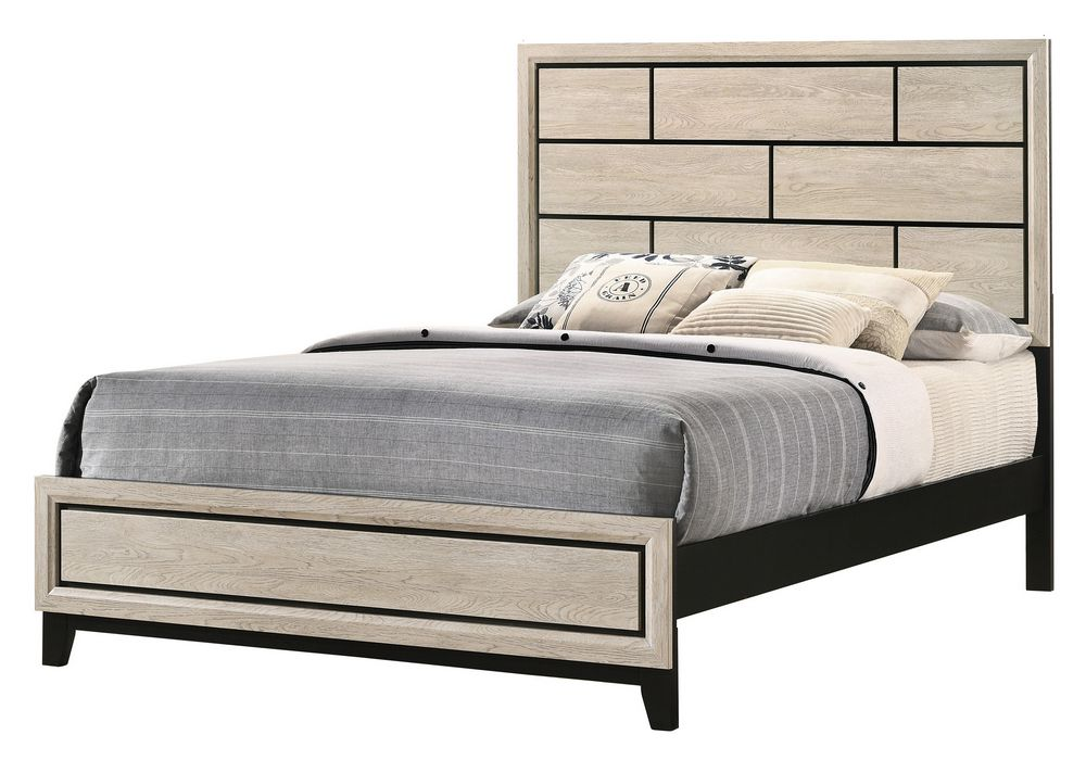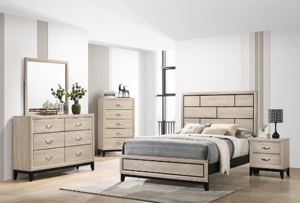 You will surely be impressed by this Driftwood Queen Bedroom Set. It features a panel headboard, a low profile footboard, and tapered wooden legs. Finished in a neutral, blonde tone, this set will easily fit into any home decor.