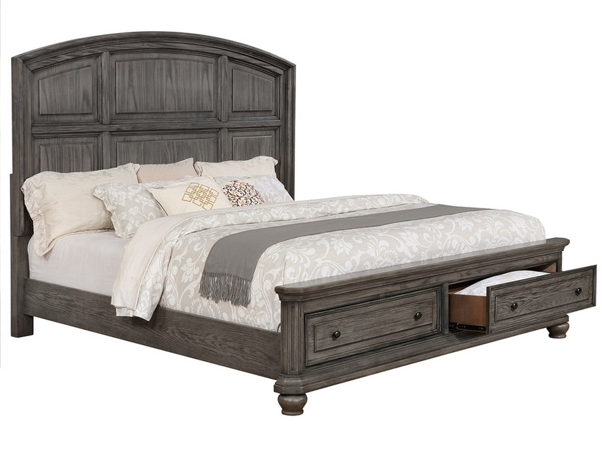 Affordable, functional, and fashionable, what's not to love about this relaxed vintage bedroom collection? It takes modern functions, such as outlets and USB charging, and mixes it with well-loved traditional characteristics like crown molding, beading, and bun feet. The soft gray finish is complemented by a weathered wood grain design that adds a welcoming texture to the collection. Bedroom Set includes: Headboard, Footboard, Rails, Dresser & Mirror.