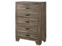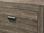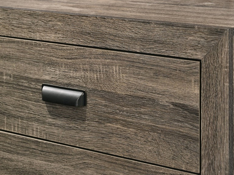 The James Bedroom set combines simplicity and style. It features a grey finish, panel headboard and footboard, and tapered wooden legs. The case pieces feature large drawers with metal hand pulls and stand on tapered wooden legs. This set is sure to make your room a cozy place to rest.