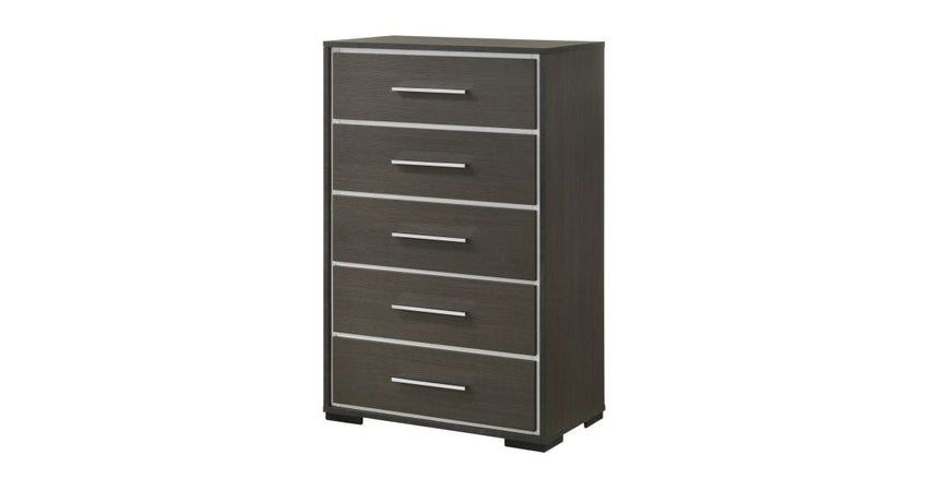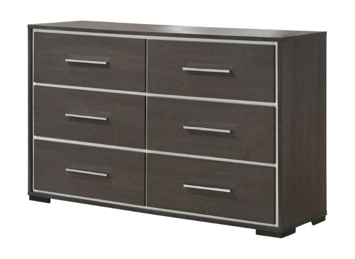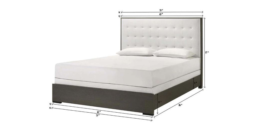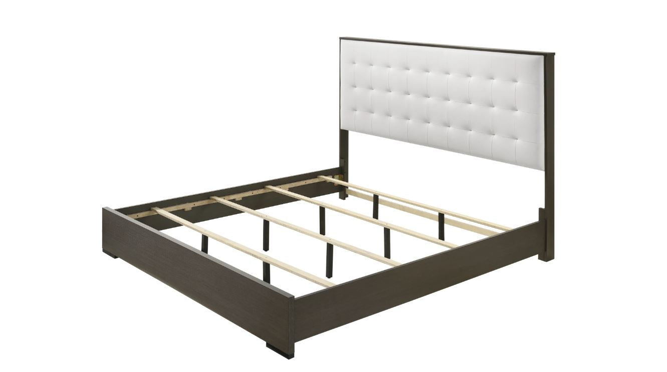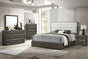 Discover the modern charm of this bedroom collection, featuring a clean-lined design with a warm, dark finish. The centerpiece is a bed with a stylish tufted headboard, providing a touch of class. This set includes a matching dresser, mirror, and nightstand, each offering ample storage space with a sleek look. Ideal for a contemporary room, this set delivers comfort and simplicity in one package. The chest is sold separately.