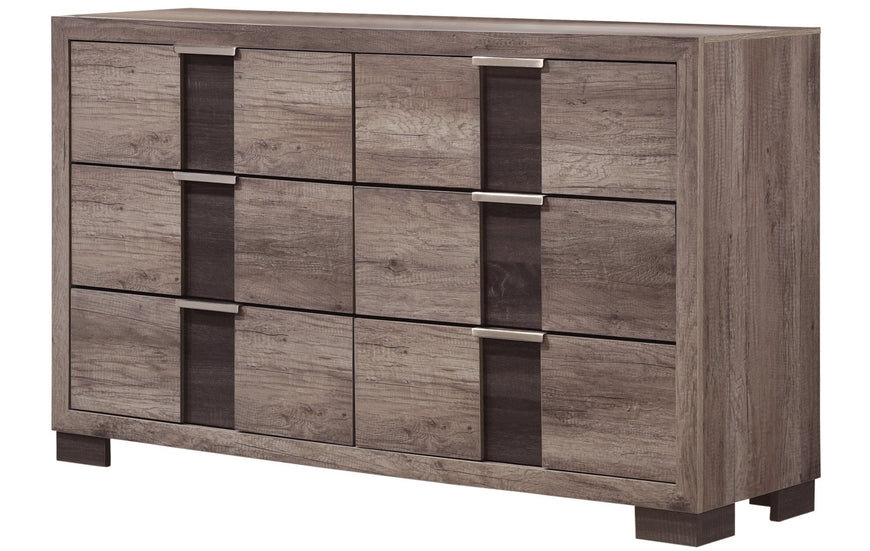 The Rangley Bedroom Collection combines both elegance and sophistication through its beautiful grey and black finish that adds a touch of elegance to your decor. It includes a queen size bed, drawer dresser, dresser mirror, nightstand. The neutral tones of this bed set make it easy to blend with a wide range of decor styles, and its clean and minimalistic design will create a restful and serene atmosphere in your bedroom.