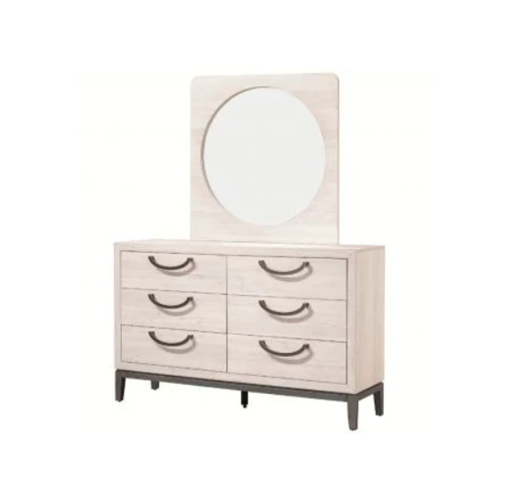 Experience the blend of minimalism and elegance with this chic bedroom ensemble. Crafted with a light and airy finish, it creates an inviting atmosphere while the sleek lines and subtle contrasts in color emphasize a modern aesthetic. Each piece showcases thoughtful craftsmanship with unique drawer pulls that add a touch...