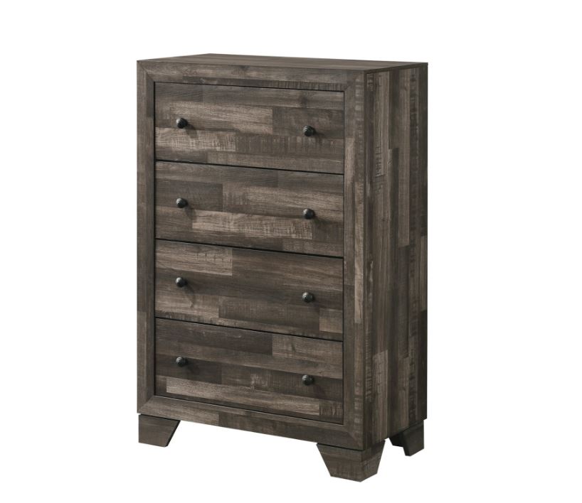 The Atticus chest is a stylish and functional storage solution, featuring a rich brown finish and four spacious drawers with sleek hand pulls. Designed to keep your belongings organized, it’s perfect for storing folded clothes like T-shirts and sweaters or extra linens. Its classic design complements any room, providing both practicality and a touch of elegance.