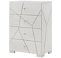 Transform your bedroom into a contemporary sanctuary with this sophisticated and stylish furniture ensemble. Defined by its bold geometric accents and pristine high-gloss white finish, this collection exudes modern elegance while maintaining a clean, minimalist aesthetic.