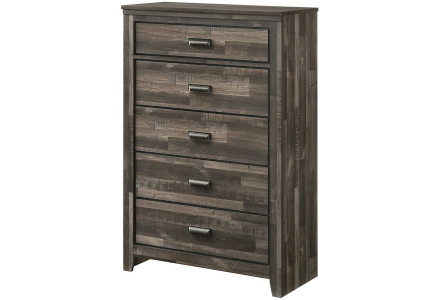 Bring modern style to your decor with this contemporary chest. You'll love the look of its multicolor finish and natural looking wood grain, as well as its metal hardware.