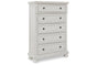 Elegant, timeless furnishings take your bedroom to the next level. Nothing does that better than the Dale chest. The antiqued white finish with a wonderful grain texture oozes sophistication, while the dark bronze-tone hardware adds an ornate touch. A felt-lined top drawer rounds out the piece for the ultimate tasteful...