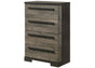 Add a touch of sophistication and ample storage to your bedroom with the Remington Chest. Featuring five spacious drawers with sleek bar handles, this piece combines functionality with modern elegance. The rich two-tone brown finish elevates any space, making it the perfect statement piece for your bedroom.