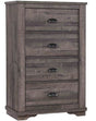 Give your bedroom tasteful storage with this transitional chest. This piece features metal hardware, clean lines, and bracket feet for a homey design you're sure to love.