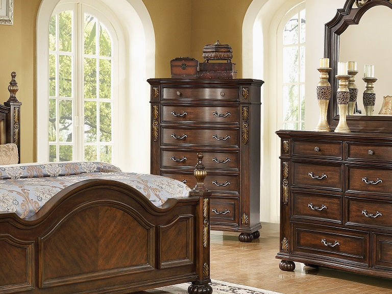 Create a welcoming environment in your home with the Sloane Chest. The intricate carvings attract attention towards the solid wood construction, and the cozy, dark walnut finish will luxuriously decorate any bedroom.