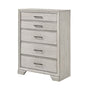 This 5-drawer chest brings a sleek and stylish update to any space with its elegant design. The white mist finish adds a touch of sophistication, making it a focal point in any room while still maintaining a sense of warmth and coziness. The chest offers ample storage with its five spacious drawers, blending functionality with contemporary aesthetics to enhance your decor.