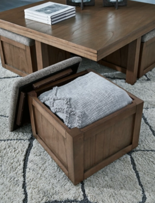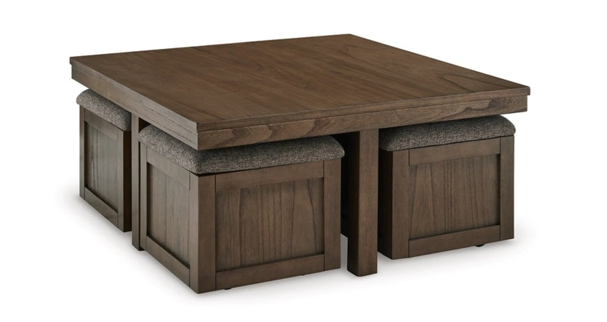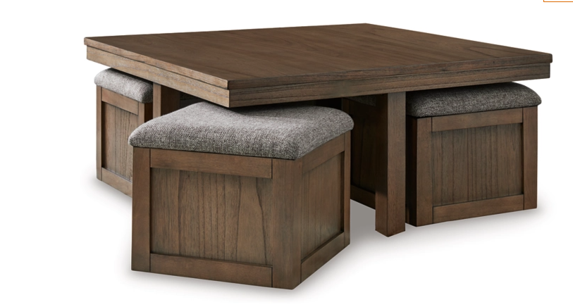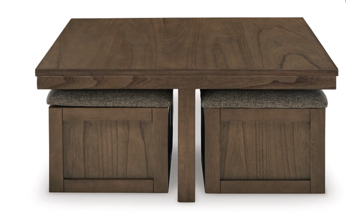 Elevate your entertainment experience with this coffee table with stools. A functional companion for your seating area, it’s defined by a richly versatile finish. Instantly upgrade game days and movie nights—the four stools wheel out easily with casters, tucking away neatly under the table when you’re done. And with storage under the top of each stool, you can keep essentials on hand and out of sight.