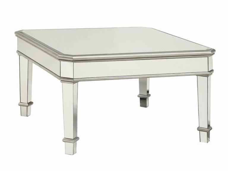Go for that glamorous look in your loving room with the square mirrored coffee table. Beveled edges and squared legs give you an elegant look with lots of shine to brighten your space.