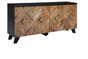 Diamond life. Make a bold, brilliant statement with this 4-door accent cabinet. Its two-tone styling merges a dark brown exterior with a multi-tonal distressed finish on the doors and handles. Diamond-shaped plank effect brings rich, dimensional flair to the scene. Adjustable shelving makes this high-end accent piece highly functional.