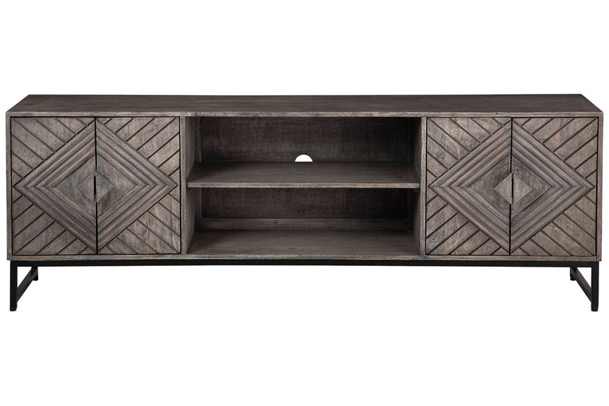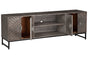 For admirers of understated vintage glamour, this accent cabinet beautifully complements your desired aesthetic. The classic charm of a distressed gray finish meets chic metropolitan styling, with art deco-inspired door fronts and an industrial black metal base. A balanced blend of contemporary and casual design, this piece is the personification of laid-back luxury.