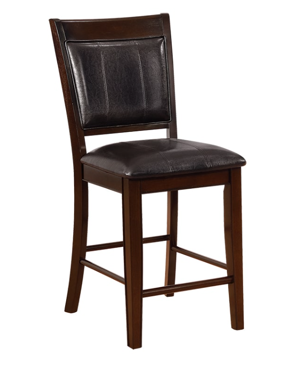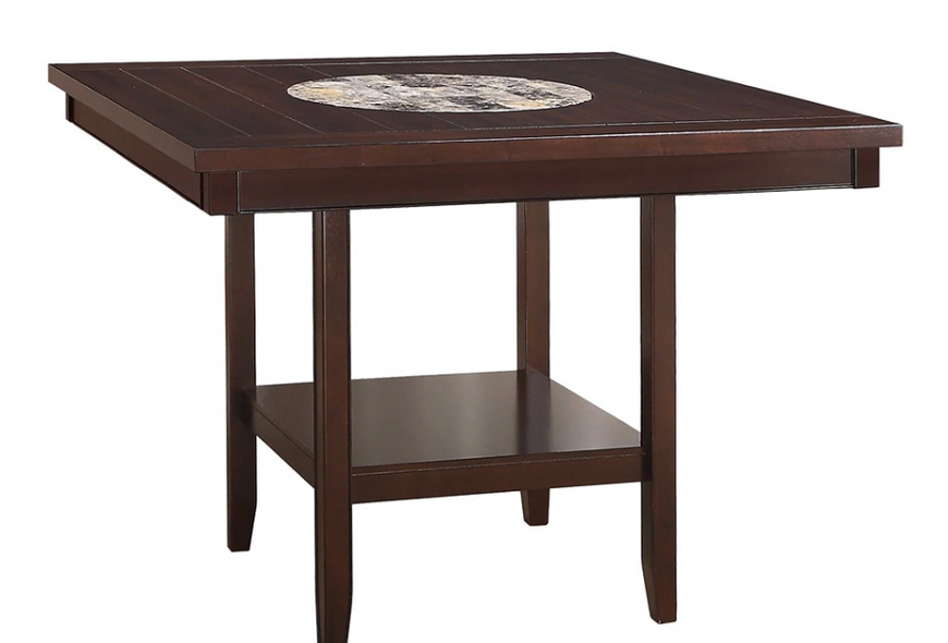 Upgrade your dining space with this luxurious counter height dining set, designed for both style and comfort. The set features a rich dark finish that exudes sophistication, making it a perfect centerpiece for any dining room. The table boasts a spacious, finely crafted top with a beautiful faux plank finish and built-in turntable, supported by a sturdy base that ensures stability and durability. Accompanying the table are four elegant chairs and a versatile bench, all upholstered in plush, black faux leather that provides a sleek, modern look while offering supreme comfort. The padded seats and high backs are designed to enhance your dining experience, making every meal a pleasure. Ideal for both casual family meals and more formal gatherings, this set is sure to make a lasting impression in your home.