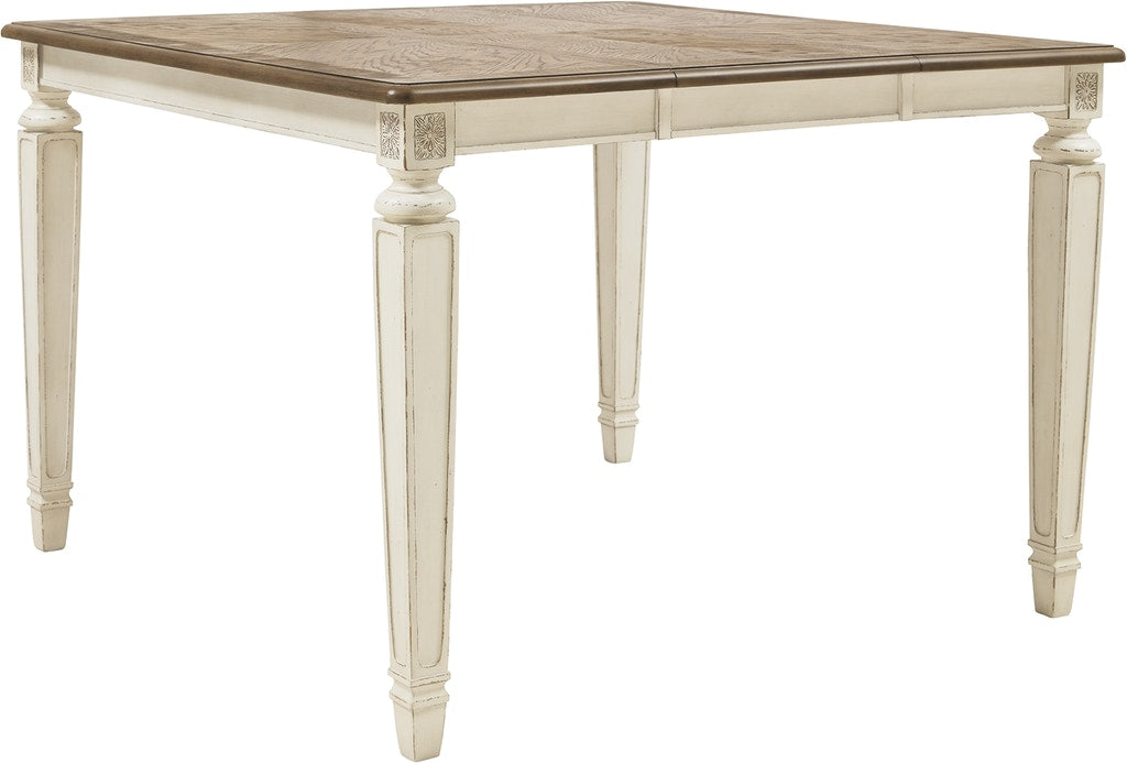 Bon appétit. This counter-height extension table has all the right ingredients for a French country-inspired feast for the eyes. Antiqued two-tone aesthetic pairs a chipped white with a distressed wood finished top for a double serving of charm. Drop-in leaf extends table to a square allowing you to comfortably seat six.