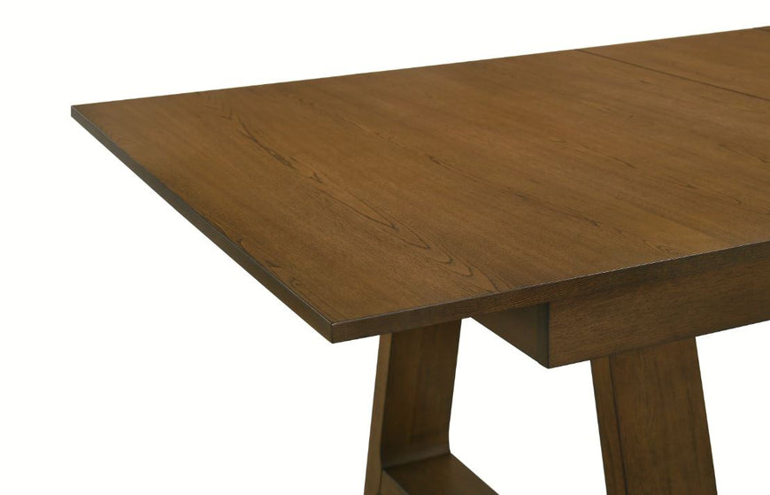 This dining group brings a blend of rustic charm and contemporary elegance to any dining space. Crafted from rich wood with a warm finish, it radiates an inviting feel that’s perfect for family gatherings and stylish entertaining. The sturdy table features a spacious top with a self-storing leaf, providing ample room for meals, while the bench adds a casual yet versatile seating option. Each chair is designed with a contoured back and upholstered seat for exceptional comfort, seamlessly combining form and function. The neutral tones and clean lines create a look that effortlessly complements both modern and farmhouse aesthetics, making it an ideal choice for those who value style and functionality in their dining area.