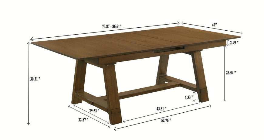 Table- 42" x 71: (87" with 1- leaf) x 30" H