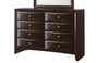 Maintain a clean and uncluttered look in your master or guest bedroom with this contemporary dresser. The drawers feature dramatic beveled fronts and polished silver look metal knobs for a sophisticated and elegant storage piece. Store clothing, linens and blankets in the spacious interior offered by each drawer. The dresser's smooth, flat surface make it an ideal display space for vases, plants or decorative accents. Group with the matching nightstand and chest for functional bedroom storage that reflects your contemporary style.