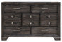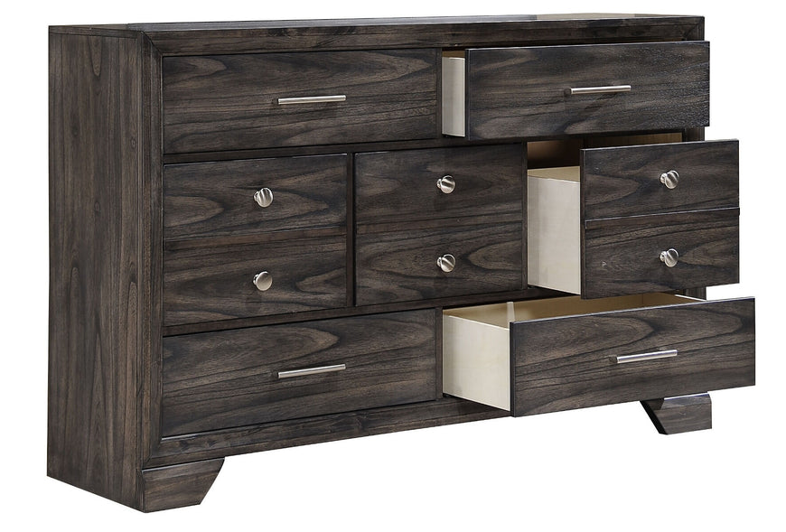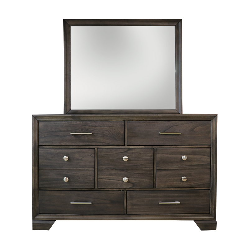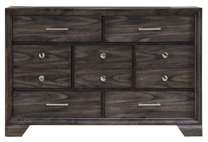 With a gorgeous dark wood finish that boasts a vibrant grain, you'll love having this seven drawer dresser in your bedroom. The hardware is a combination of metal knobs and handles that provide a visual counterpoint to the finish. As storage goes, you receive seven spacious drawers that'll provide excellent space for your clothing and accessories.