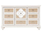 This chic and feminine dresser is extra-customizable as you can choose the look by switching the reversible drawer fronts to show salmon-colored faux leather or matching wood in Pearl finish. Crystal-like clover drawer pulls, clover leaf carving, and reflective insert panels give this storage piece gorgeous cottage style that's the...