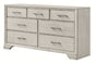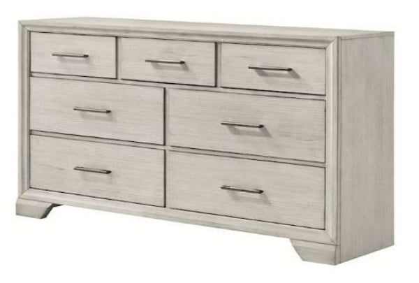 This 7-drawer dresser brings a sleek and stylish update to any space with its elegant design. The white mist finish adds a touch of sophistication, making it a focal point in any room while still maintaining a sense of warmth and coziness. Offering ample storage with seven spacious drawers, this dresser blends everyday functionality with contemporary aesthetics to enhance your décor.
