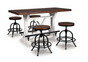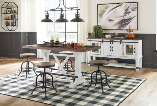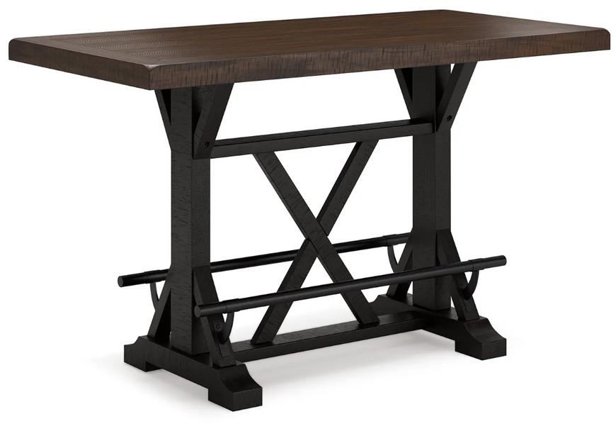 A high-style choice for smaller spaces, this counter height dining table serves up the best in rustic farmhouse living. The table's two-tone finish pairs a brown wood-tone top with a rustic black base for a double helping of charm. Black metal footrests add such a distinctive twist.