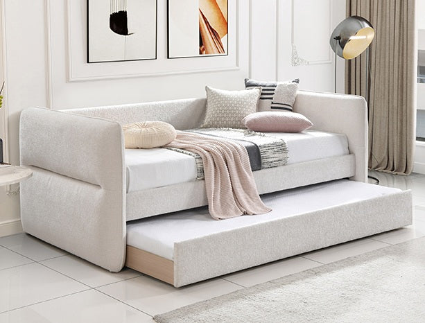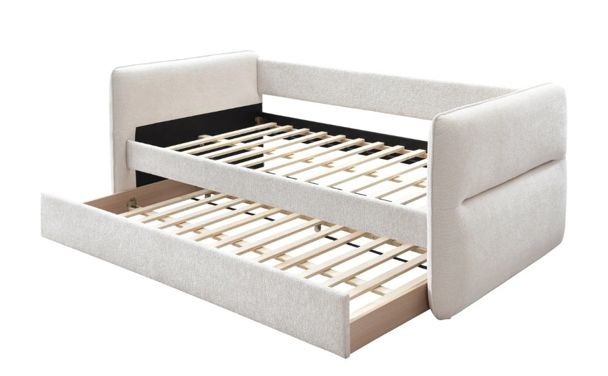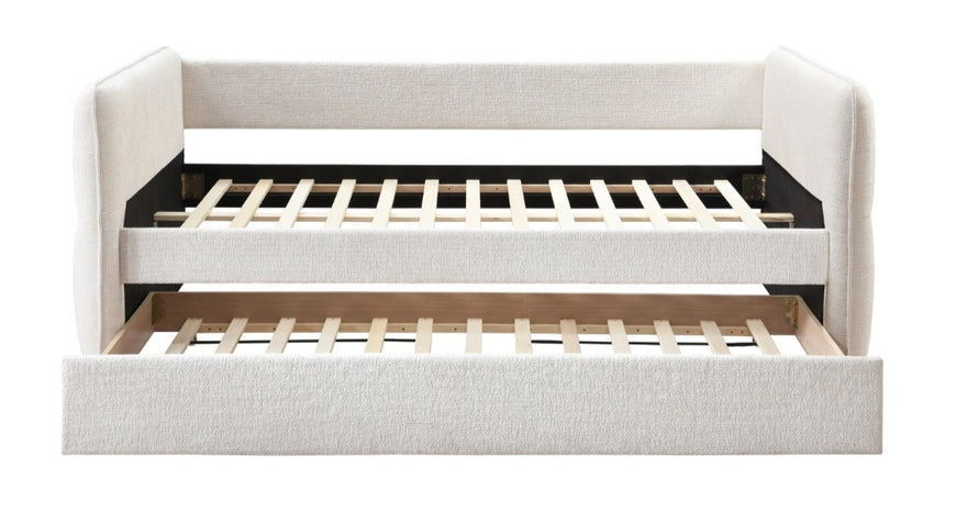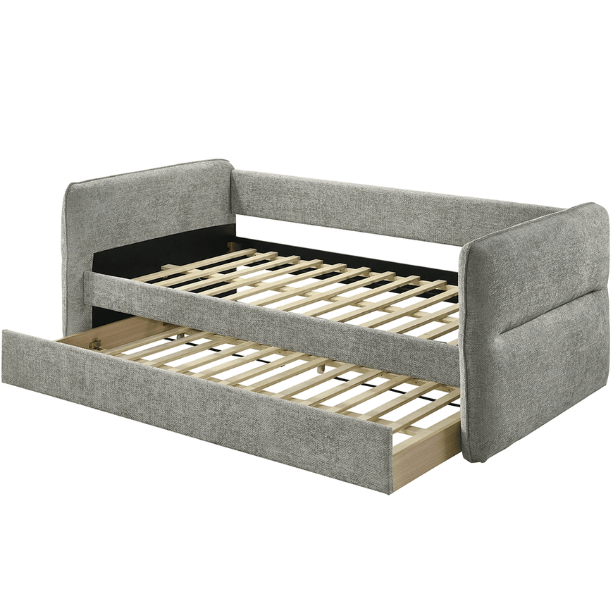 This stylish and multifunctional daybed is the epitome of modern versatility and chic design. Its clean lines and on-trend upholstery make it a seamless addition to any living space or home office. The daybed features an innovative pull-out trundle that effortlessly transitions the piece from a cozy lounge to a comfortable sleeping solution for guests.