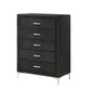 Luxuriously unwind at the end of a long day in this glamorous king-bedroom set. Fully upholstered in a cool black fabric, your bedroom is given a modern makeover. Adorned with nailhead trim and button-tufting you relax like a golden-age Hollywood star fresh off the red carpet, while headboard wings and scroll top detailing add a vintage charm to an otherwise contemporary piece.