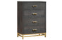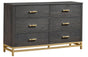 This set oozes contemporary beauty with its sleek lines and deep black finish, adding a touch of refinement to any room. The set features a robust bed frame, matching nightstands, and a large dresser, providing both flair and functionality. The Trevor Bedroom Set is precision-crafted a quality-conscious company, and offers durability and timeless elegance. Make a statement in your bedroom with this exclusive collection that combines style and function for a genuinely refined living experience.