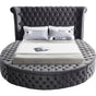 The imposing, regal headboard features rolled wingback styling complete with armrests that's both chic and comfortable. Both the headboard and footboard come with button tufted styling for added flair. The bed is upholstered in grey with metallic accents and nailhead trim. Usb plug ins on both side of the headboard make sure you stay connected at all times. This bed is a truly magnificent addition to the bedroom.