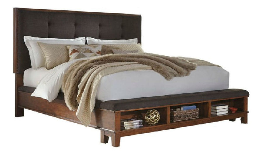 The look may be cool and contemporary, but the feel is so cozy. Bring home high-end design that's exceptionally affordable with the Riley queen bed. Its indulgent take on minimalist design with a clean-lined, blocky profile is enhanced with thickly padded tufted upholstery found on the headboard and top of the storage footboard. Beautiful from the inside out, the smooth-gliding, flush-fit drawers are crafted with quality dovetail construction—for a timeless look that’s made to last.