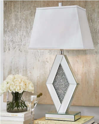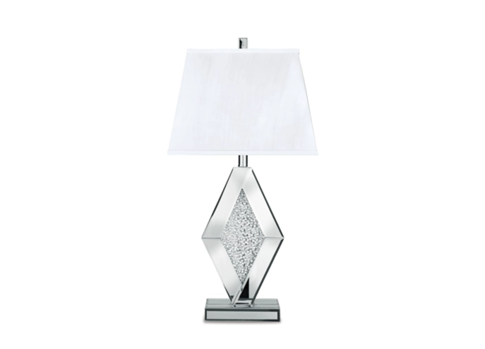 With an elegant array of mirrored glass and crystal beads, this table lamp adds a brilliant touch of wow to any setting. It's topped with a rectangular empire shade for an utterly luxe look.