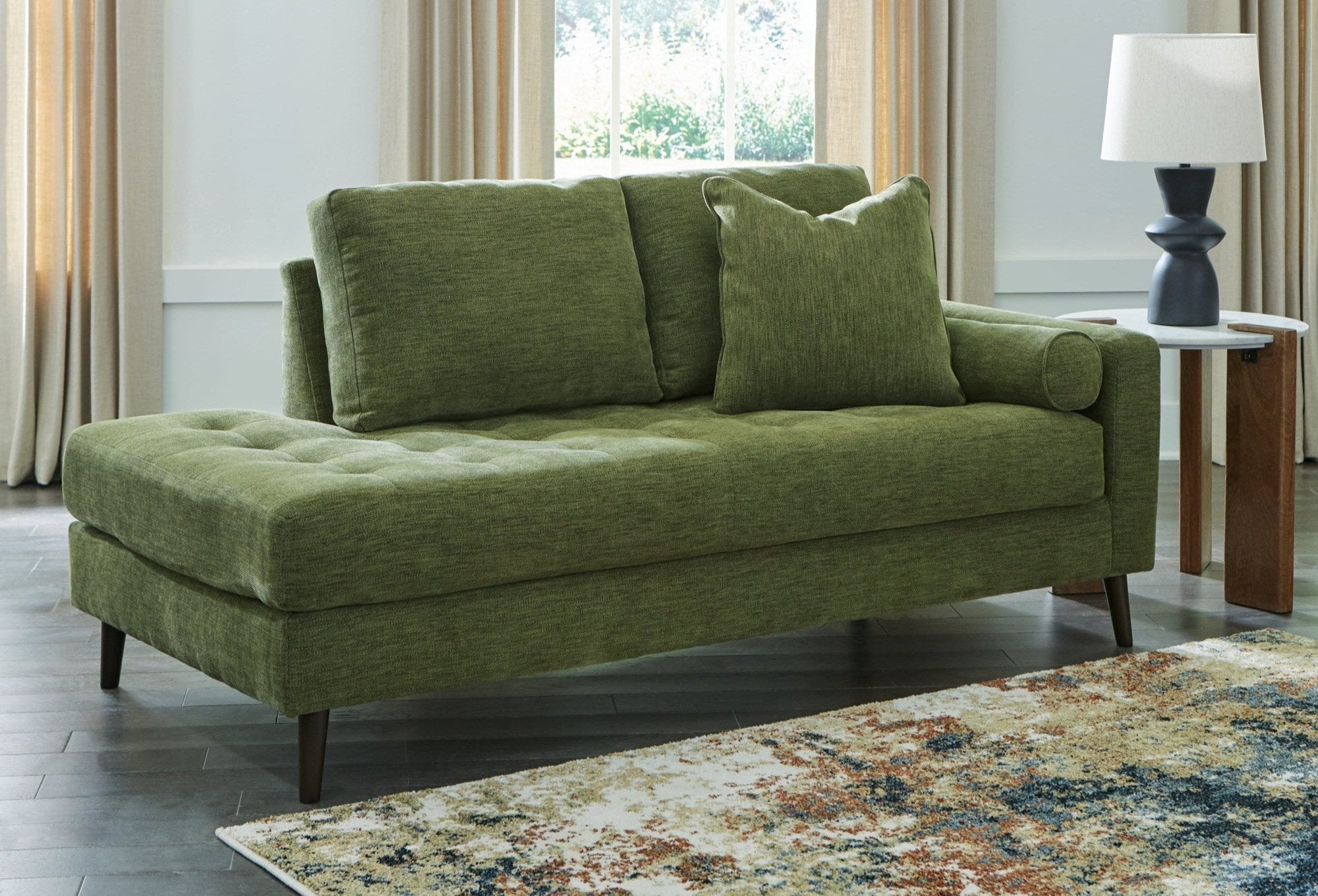 Feed your mid-century modern nostalgia—with a contemporary twist. A vibrant trend-right hue and comfy feel make this sofa and chaise perfect for lounging solo or with friends and family. Its linear profile adds plenty of fresh style, and the tapered accent legs are a nice revival.