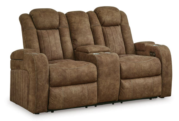 Furnish your space with fashionable function in mind. This power reclining loveseat is defined by its rich tonal variation, handy storage space in the armrests and seamless one-touch reclining. The addition of USB charging makes it an apt addition to your home’s relaxation hub, expertly providing essential comforts to your living room lounging experience.