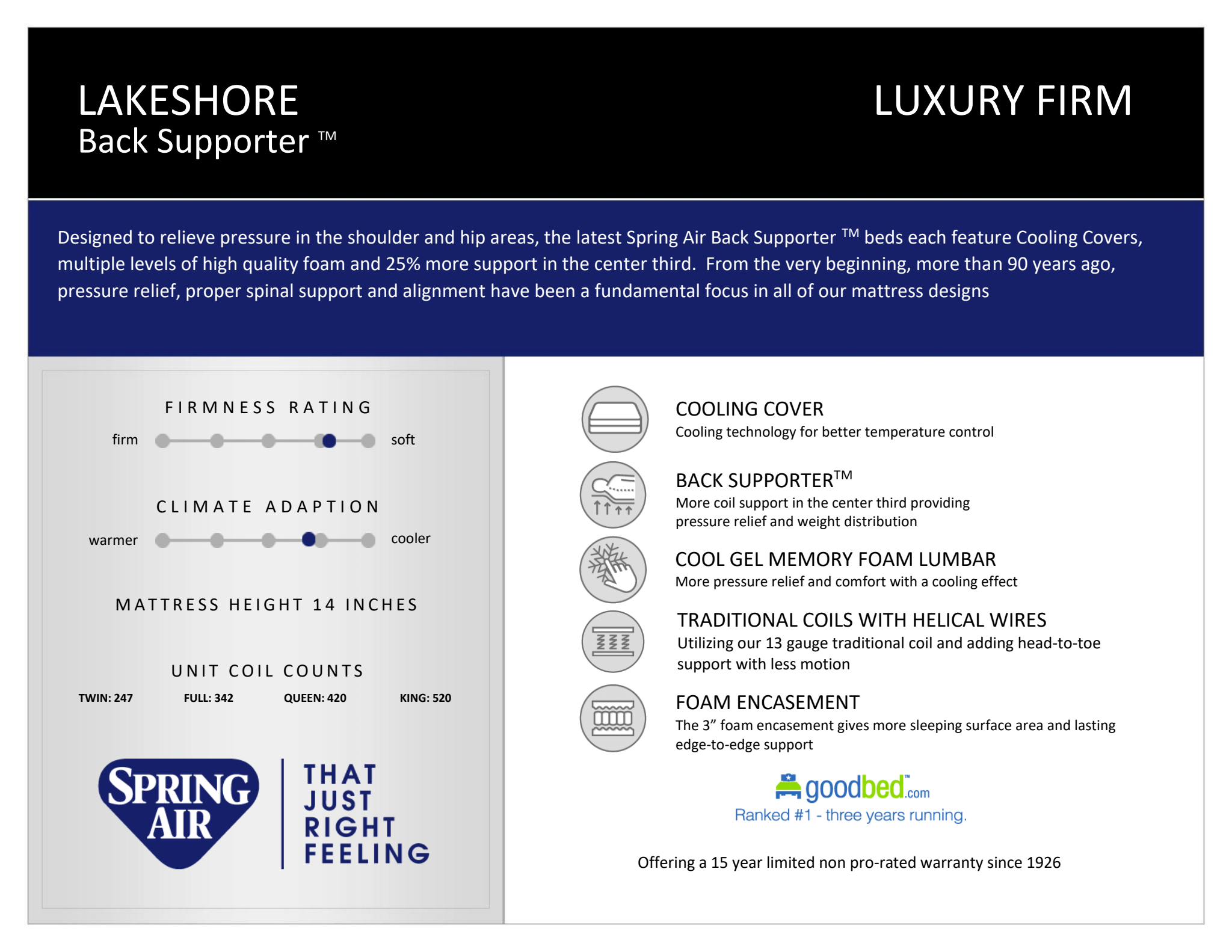 - Utilizing our 13-gauge traditional coil and adding head-to-toe support with less motion