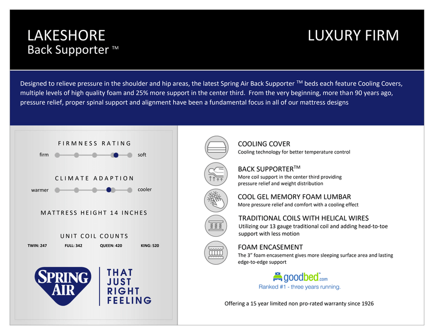Designed to relieve pressure in the shoulder and hip areas, the latest Spring Air Back Supporter beds each feature Cooling Covers, multiple levels of high-quality foam, and 25% more support in the center third. From the very beginning, more than 90 years ago, pressure relief, proper spinal support, and alignment...