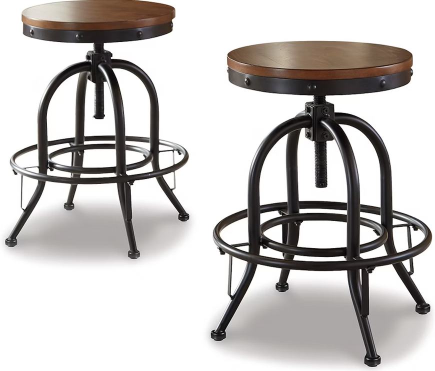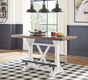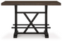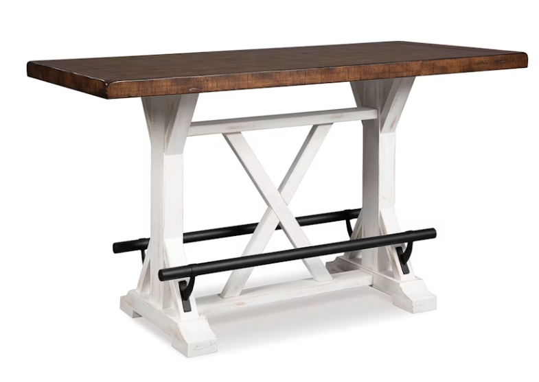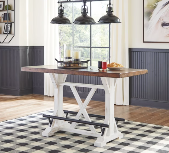 A high-style choice for smaller spaces, this counter height dining table serves up the best in rustic farmhouse living. The table's two-tone finish pairs a brown wood-tone top with a rustic black base for a double helping of charm. Black metal footrests add such a distinctive twist.
