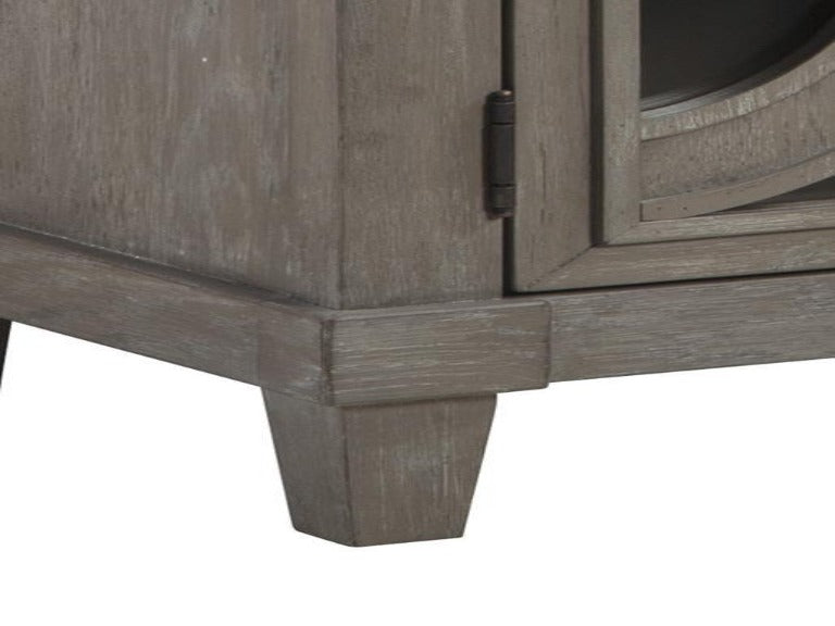 Wowing with exquisite quatrefoil framing, made all the more dramatic with the contrast of clear glass, the Fossil Ridge 4-door cabinet serves up an easy-elegant aesthetic sure to satisfy. The light and lovely finish brings a relaxed sensibility to the scene.