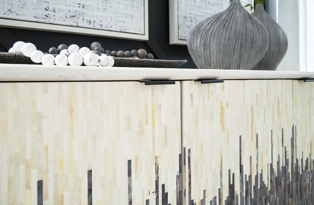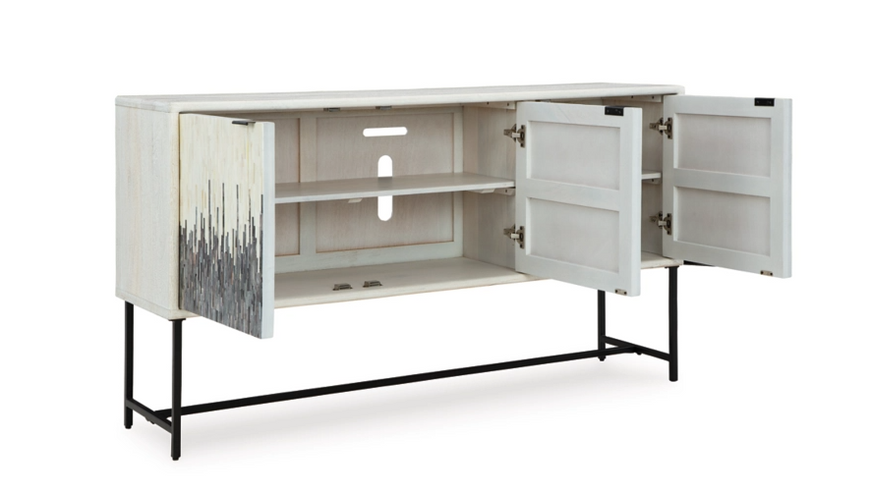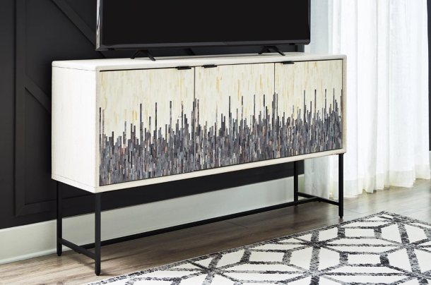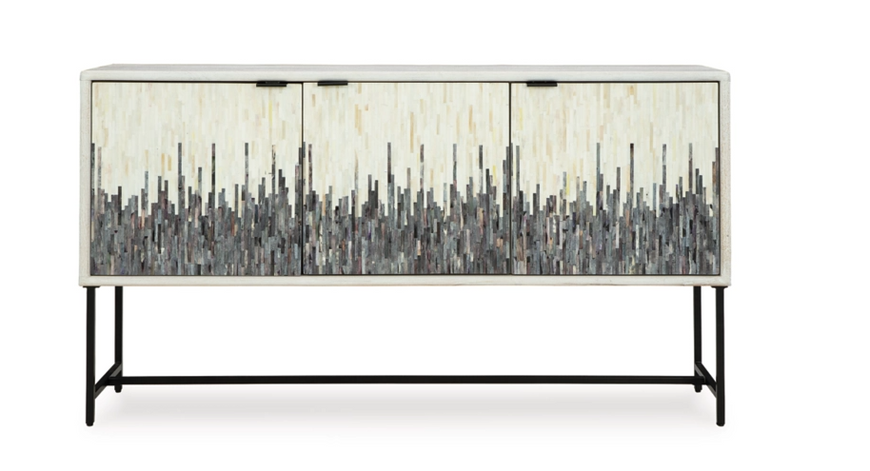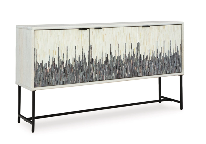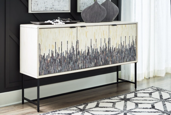 Looking for a showstopping accent for your home? This accent cabinet combines fashion and function in an exclusive way. It offers a creative take on a traditional cabinet, with a strip pattern in white, gray and black. Inside the doors, two shelves suit all your storage needs. Redefine your modern decor with this one-of-a-kind piece.