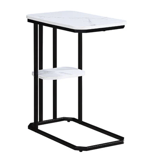 Add a touch of modern elegance to your living space with this sleek and versatile side table. The chic faux-marble tabletop delivers a luxurious aesthetic, while the sturdy black metal frame provides both durability and contemporary appeal. Its compact yet functional design features a lower shelf for added storage, perfect for keeping your essentials within reach. Whether used as an accent piece next to a sofa, a stylish nightstand, or a convenient surface for your favorite plant, this table effortlessly combines practicality with a minimalist aesthetic. Perfect for modern and transitional interiors, it’s a statement of style and functionality.