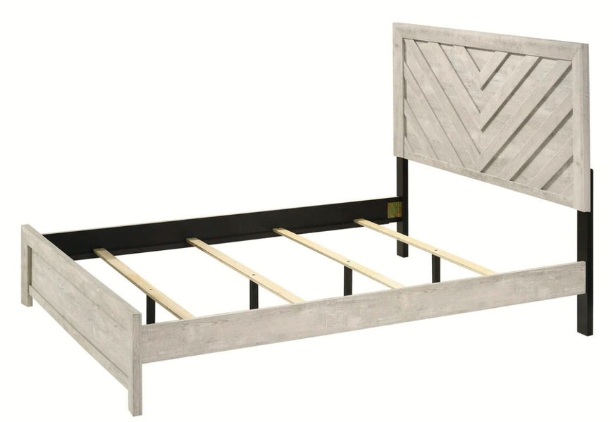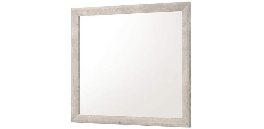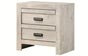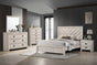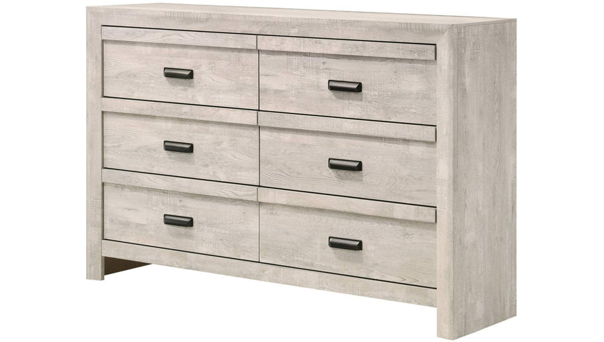 You’ll dream in style in the casual contemporary Petunia Panel bedroom set. A vibrant beige finish with clean lines adds to this stylish set along with a paneled headboard. Each piece in the set is made from hardwood veneers and solids yielding a durable construction. The case pieces have black/brown metal hand pull hardware which contrasts the beige finish perfectly. The dresser has six drawers and is paired with a rectangular landscape mirror. The nightstand has two drawers for additional bedside storage space.