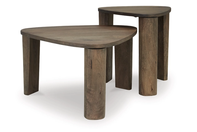 This accent table set has an elevated air, defining your living room with simply elegant style that’s equally as functional. Each table is made with naturally beautiful mango wood and further refined with a grayish brown finish. The coffee table is a perfect host for a chic book arrangement or your favorite candles, while the small nesting table is ideal for keeping beverages and remotes close.