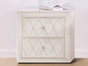 This elegant nightstand brings a touch of luxury to any bedroom with its rich, velvety texture and diamond-patterned tufting. The soft, plush exterior is complemented by gleaming crystal-like drawer knobs, adding a hint of glamour. With two spacious drawers, it offers ample storage for bedside essentials while maintaining a sleek and sophisticated look. The contrasting marble-style top provides the perfect surface for a lamp, book, or decor item, seamlessly blending style and function. Ideal for those seeking a statement piece, this nightstand elevates any bedroom with modern opulence.
