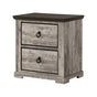 The Ella Mae Nightstand will surely make a statement in your bedroom. It features two drawers with ring pulls, and comes in a distressed beige finish with a brown top.